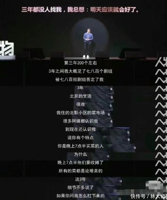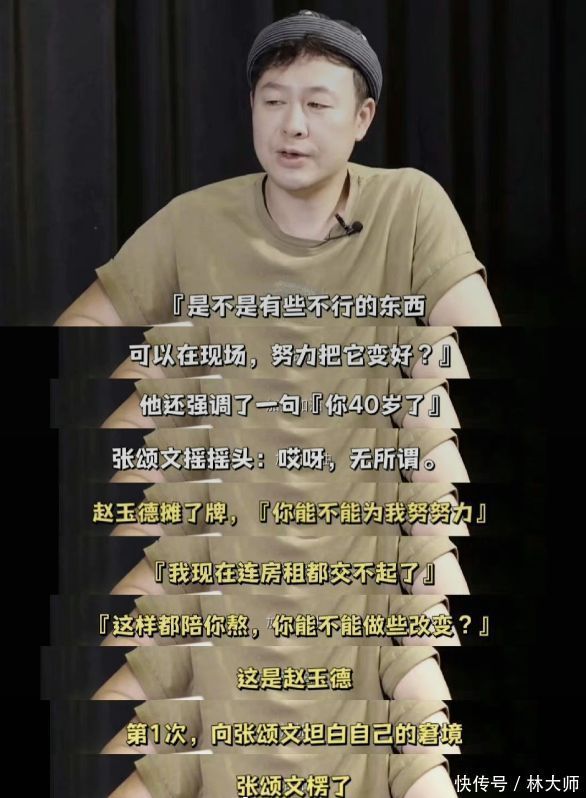 33岁的时候,张颂文遭逢了伯乐,香港著明牙东说念主赵玉德很观赏他,不远沉为他来到北京,却从不干与张颂文选脚本。