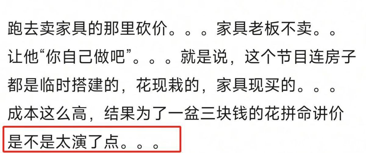 说真话这就有点太上纲上线了,王念念聪还是还说过他随机候还会用优惠券,有钱东说念主仅仅有钱,不是傻。而况卖花大姐诚然嘴上说着张颂文太孤寒,但举止上如故很快活的带着他去挑花,讲解并莫得赔钱卖。背面买居品,张颂文砍价后不买,也被质疑立东说念主设。